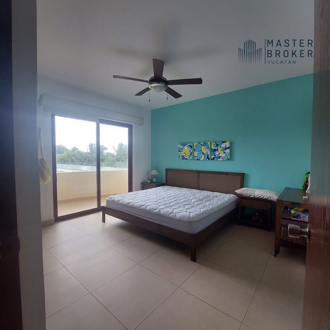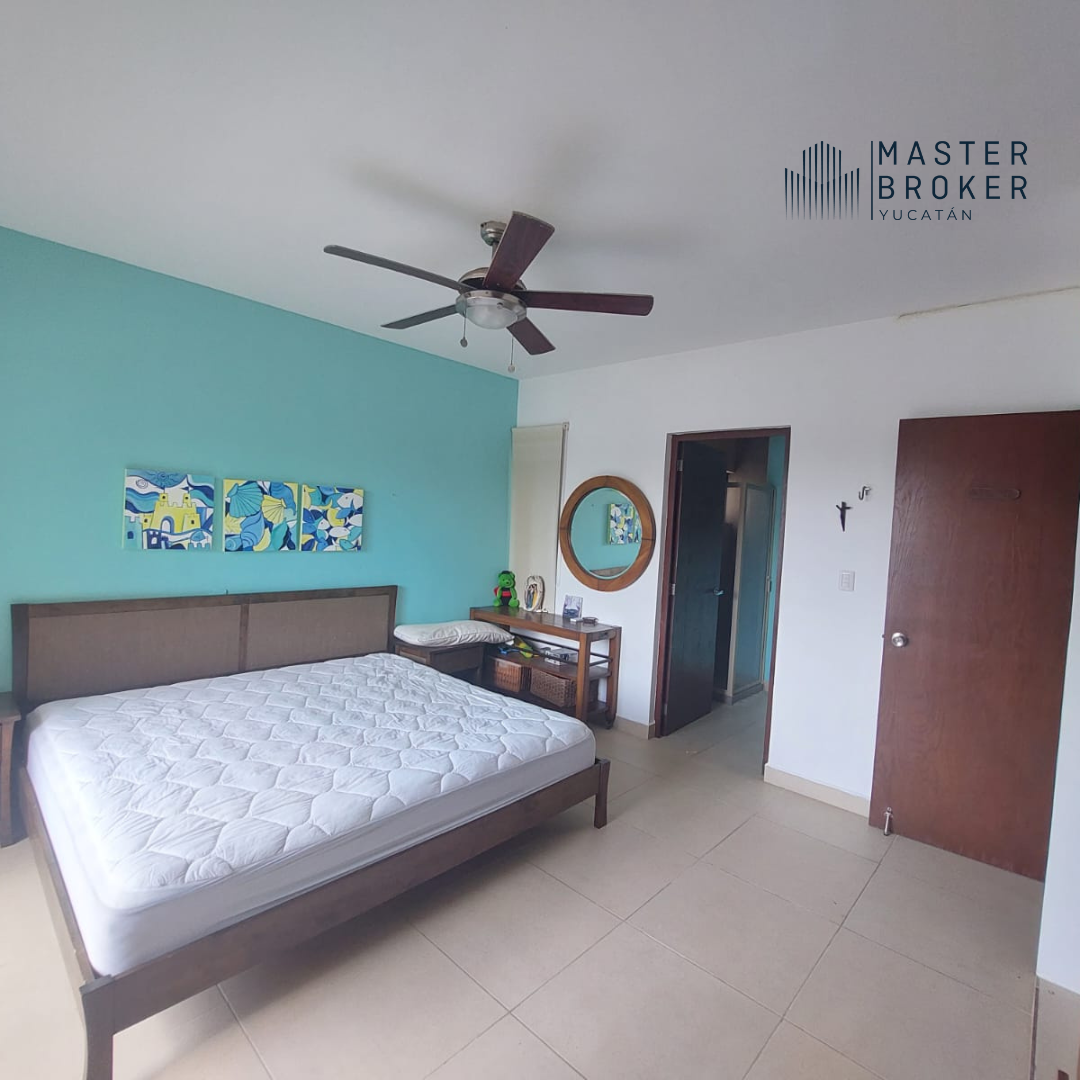 1 Recámara secundaria con cama king size, closet y baño completo equipado, ventilador, mini split y balcón.